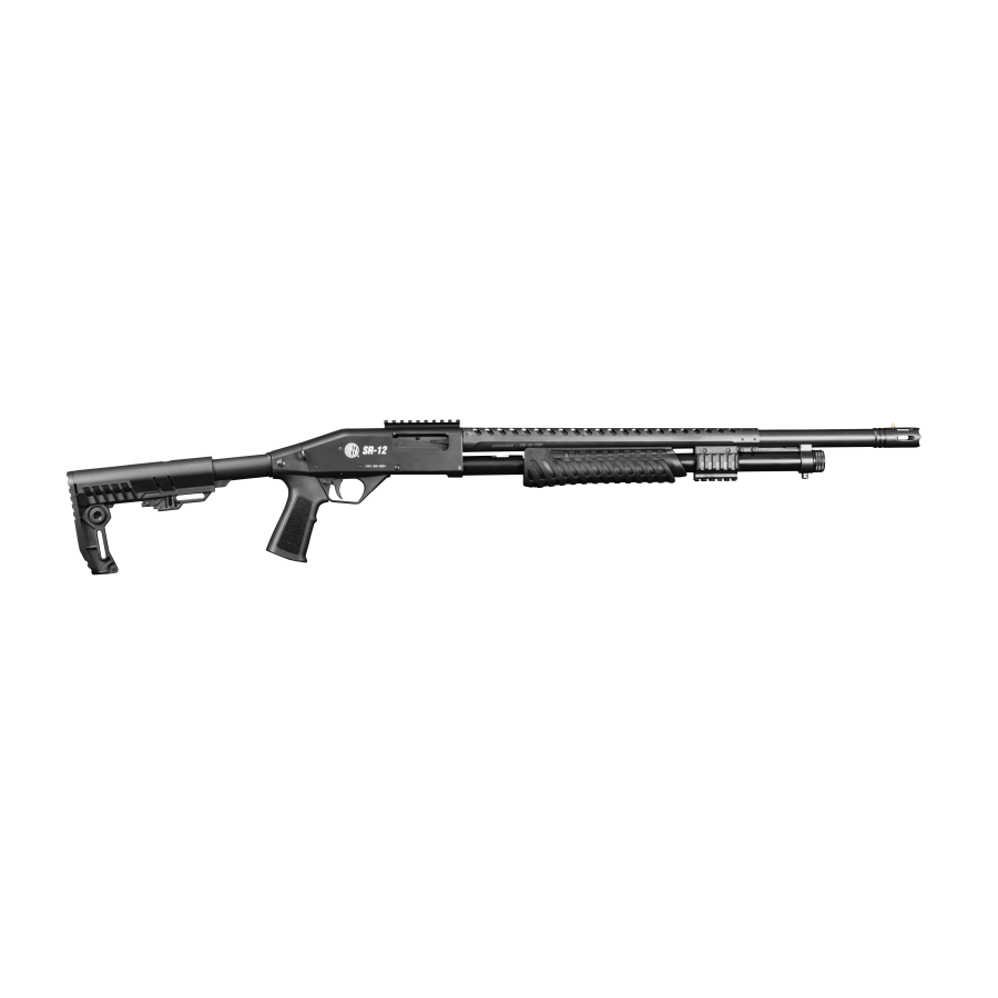 Le SR12 est un fusil à réarmement manuel avec une version TACTICAL. Il est équipé d'une crosse tactique, d'un canon rayé de 61 cm avec son déflecteur de chaleur utile lors de tir soutenu, d'une embase sur le boitier pour la fixation d'une lunette ou d'un point rouge et d'un triple rails de 22 mm à l'avant pour l'adaptation d'accessoires (lampes, lasers, etc...)