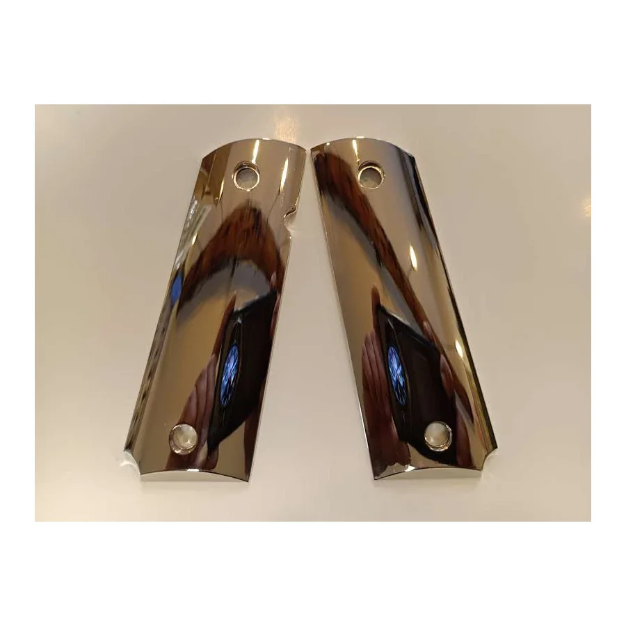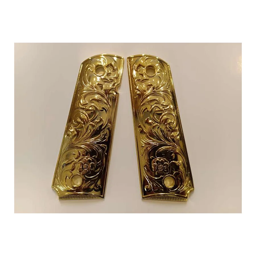 PLAQUETTE GRIP 1911 CUSTOM SCROLL ENGRAVING OR BRILLANT